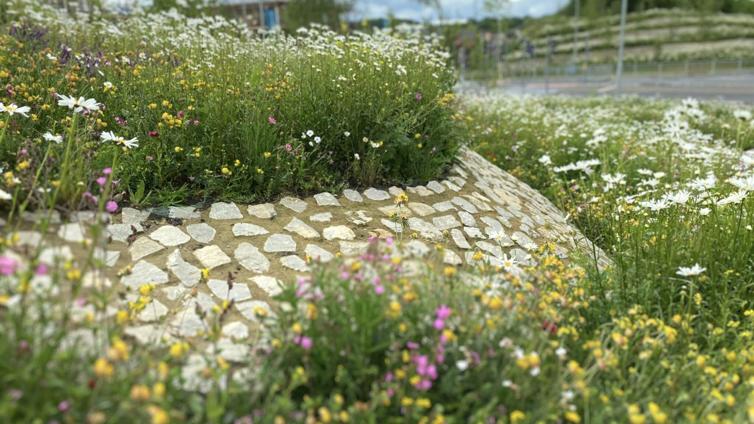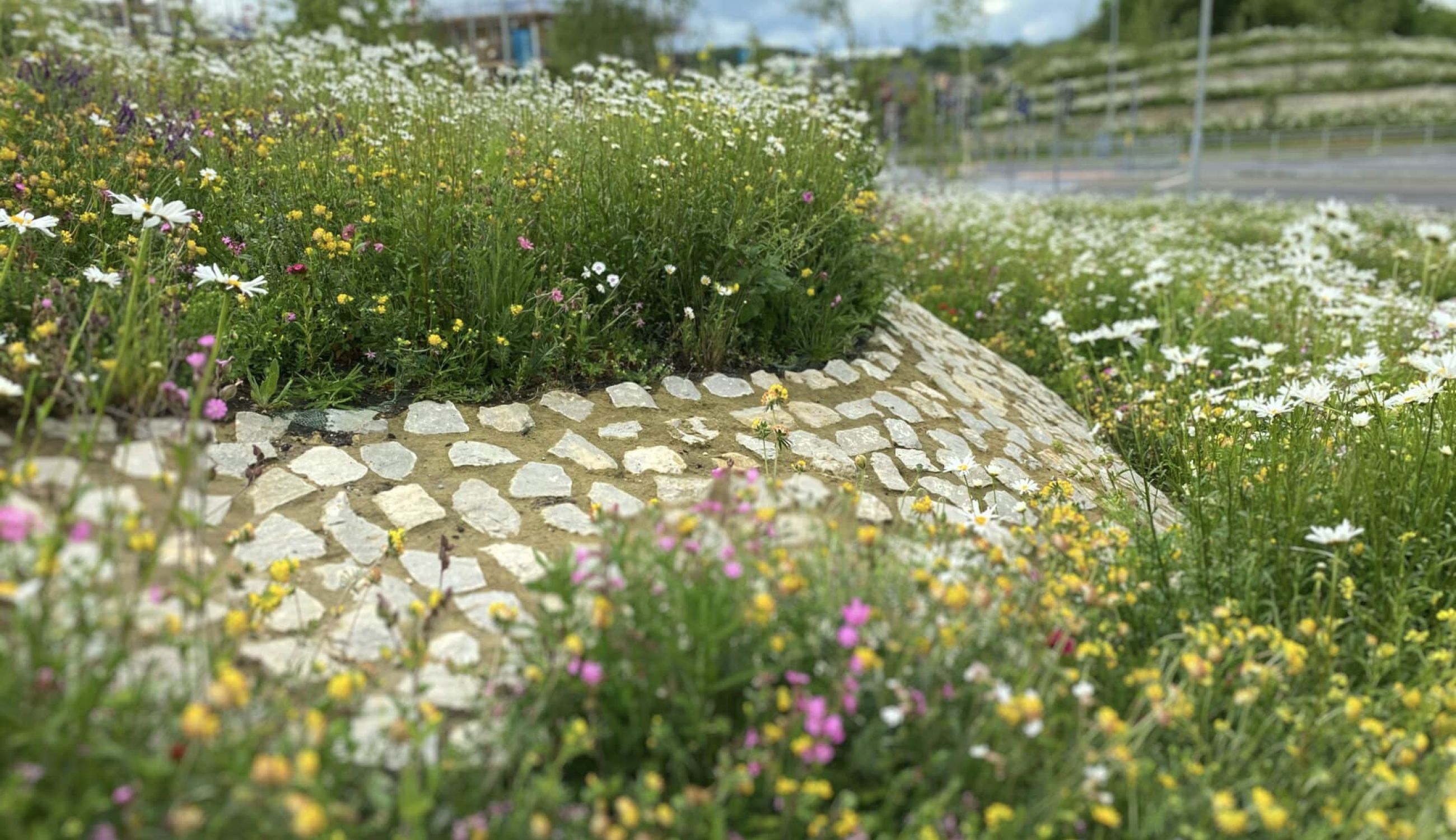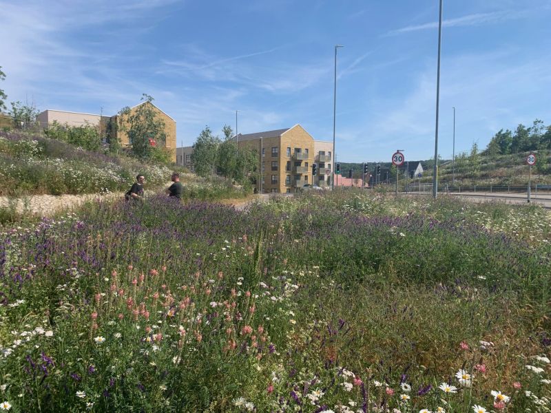 The planting scheme consisted of large swathes of UK native wildflowers and tree planting; reminiscent of the natural landscape that once existed here.