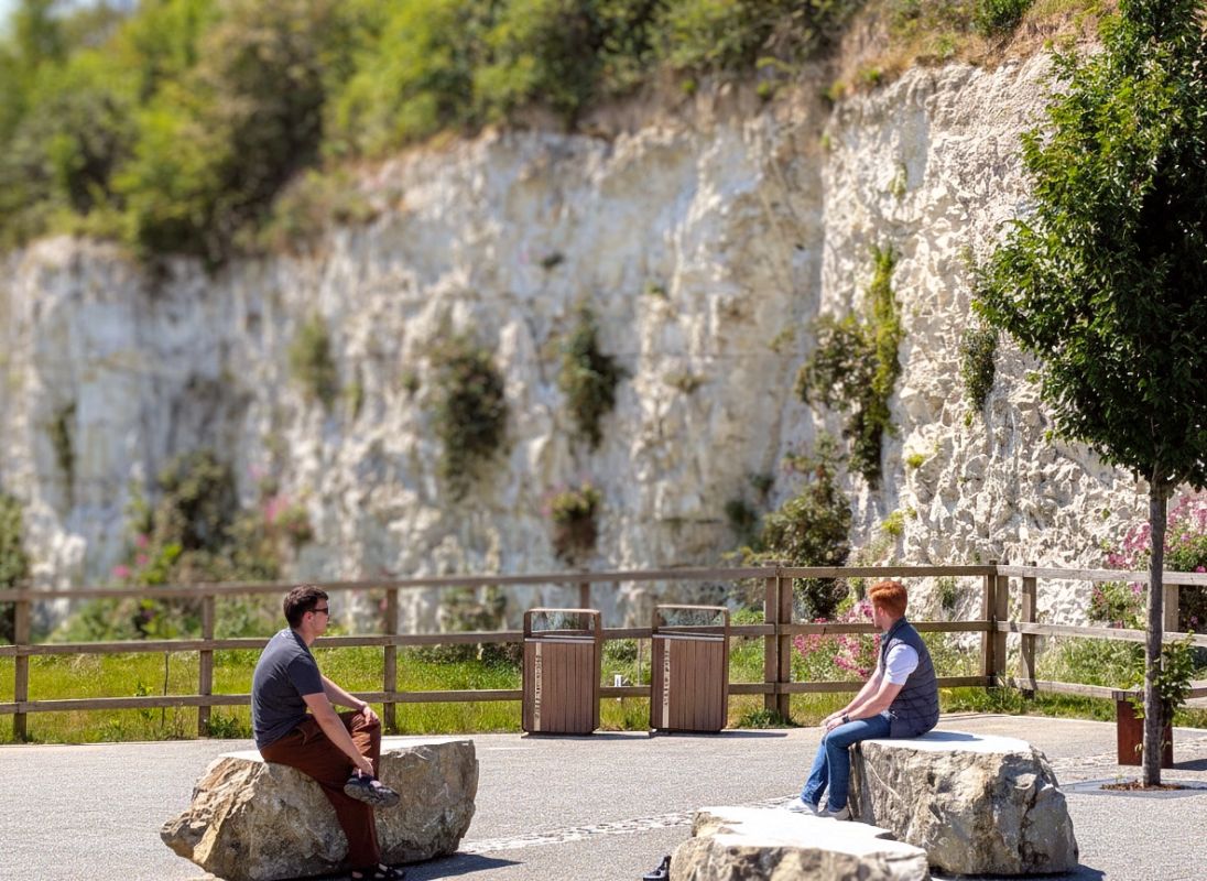 Our response was to create a series of cascading terraces that would give us the opportunity to restore the natural habitat whilst creating a visually striking sculptural landscape. The ‘Striations’ were designed to reflect a landscape carved out of stone being reclaimed by nature. These were constructed from Kentish Ragstone, a local stone reflective of the local area.