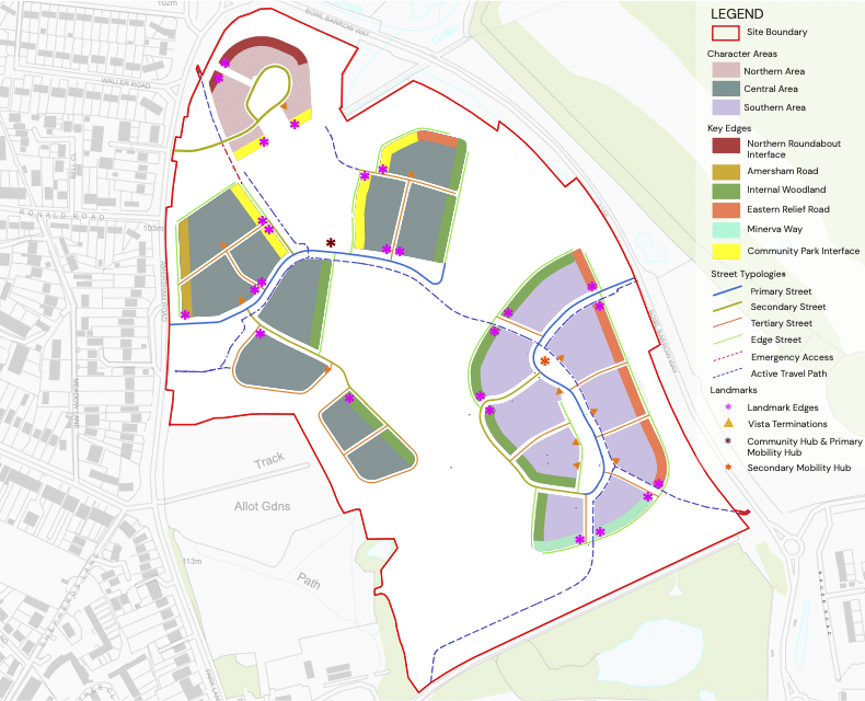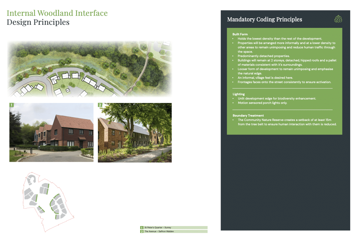 • Preparation of design coding principles to guide future development quality and consistency across the site