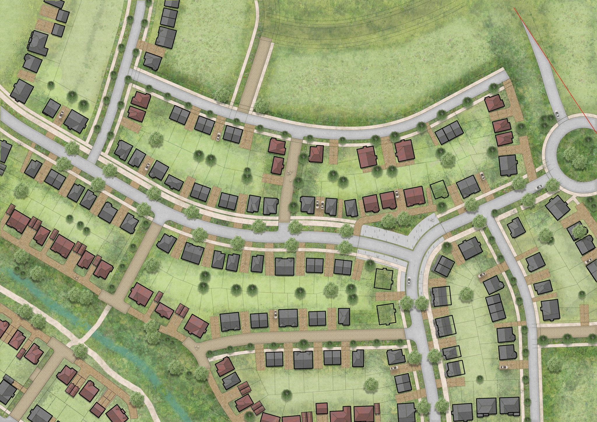 The draft allocation for the site also necessitated the preparation of a Design and Development Brief that was prepared by Define on behalf of Bloor Homes and neighbouring parties within the wider allocation. The Brief provides clarity and confidence in the quality and consistency of development across the allocation site, and has informed the Design and Access Statement for Bratton Green, which includes a Strategic Design Code to guide its delivery.