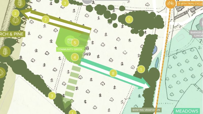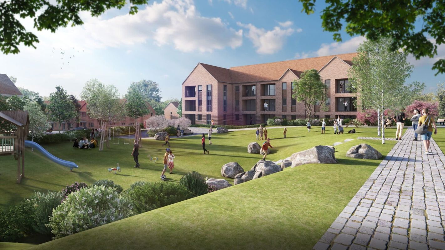 Our design process (which was developed through 3 formal design reviews) created a landscape led design, inspired by the site’s escarpment linking historic heathland with meadowland. At its centre is a large new community green, framed by bespoke apartments, housing and a care home to create an active social heart for the scheme – including play, informal seating, terraces and lawns. The site’s edges promotes a bespoke typology to create car free frontages (which are used as multi-functional green corridors) and attention was paid to delivering a landscape response that responds to the site’s underlying typologies, with the landscape concept shaping the development form and character, rather than simply responding to it.