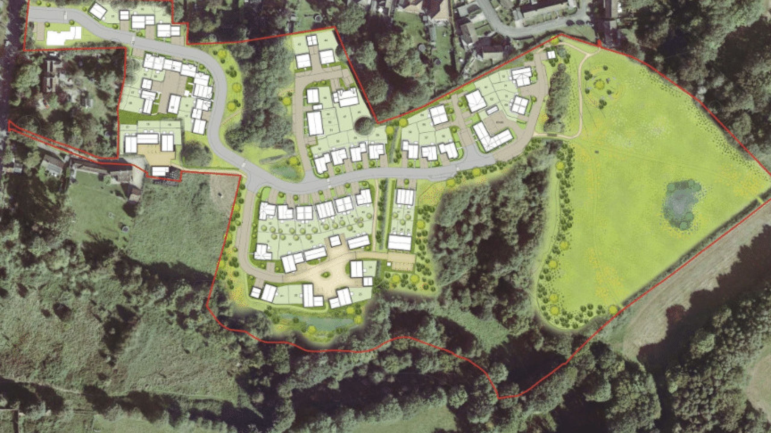 Within this highly sensitive landscape Define were engaged by Dandara Ltd to coordinate and shape a bespoke form of development that responds positively to the rich and sensitive landscape context of the High Weald AONB, specifically views towards the site from outside the built up area of the AONB.