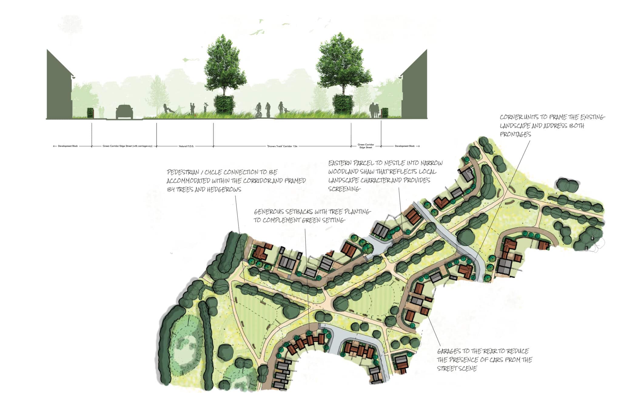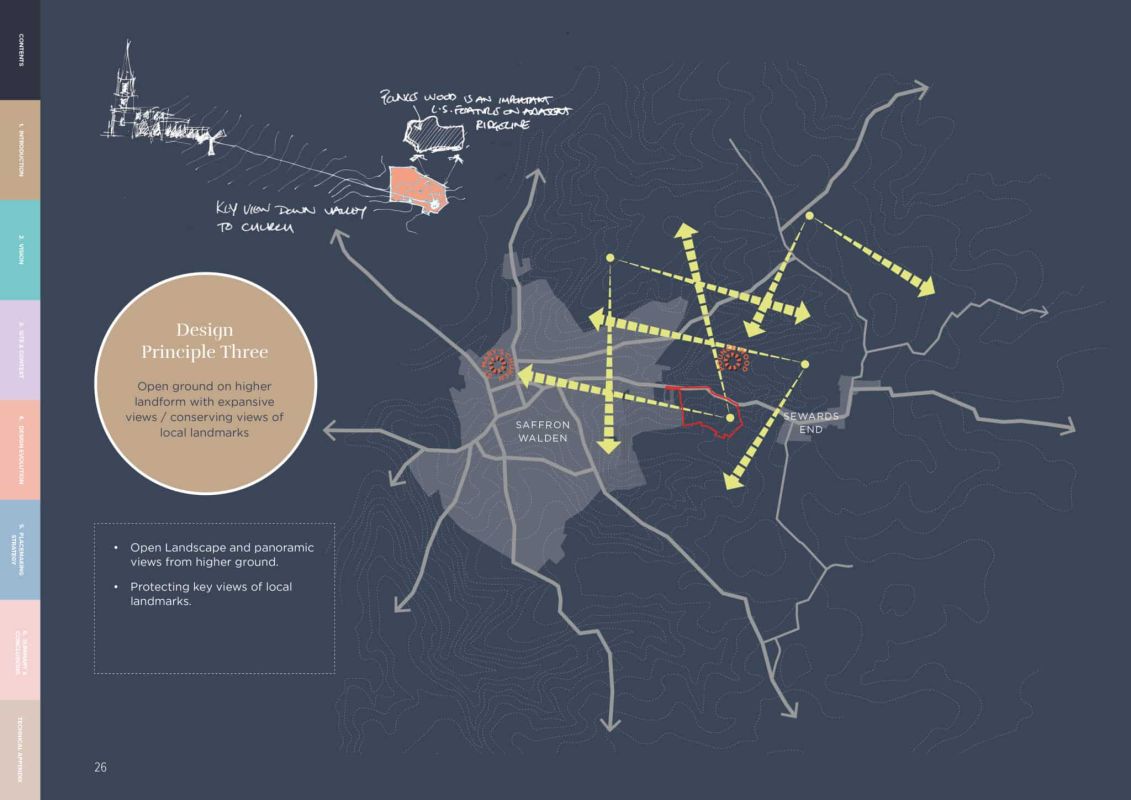 A landscape-led approach means that the historic setting of Saffron Walden can be protected whilst retaining important features such as veteran trees and hedgerows that can maximise opportunities for habitat creation.