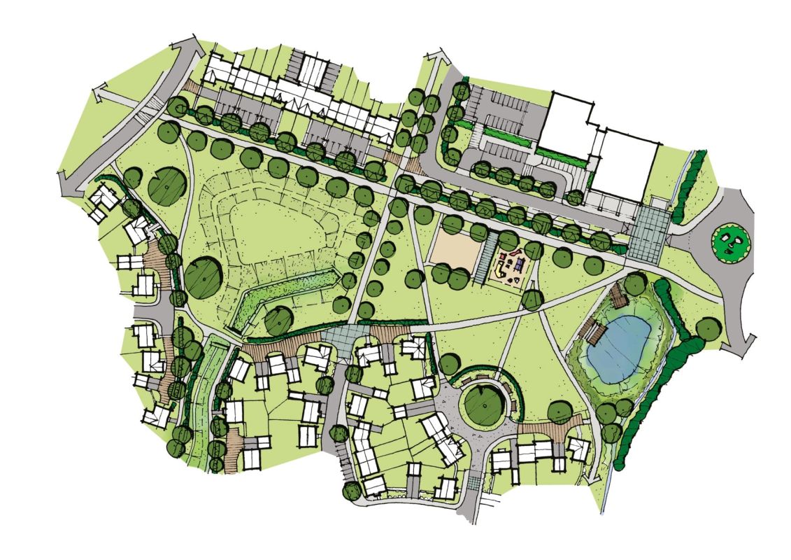 That began with the preparation of a masterplan to communicate the vision for a new community on the edge of this market town. That purposefully took a landscape-led approach; green corridors through the scheme shaping the distinct character that draws on the existing stream and hedgerows. In turn, this sensitively responds to on-site ecology, with naturalised green spaces accommodating drainage features and landscaping that enhances biodiversity, whilst forming an attractive setting for residents of the new neighbourhood.