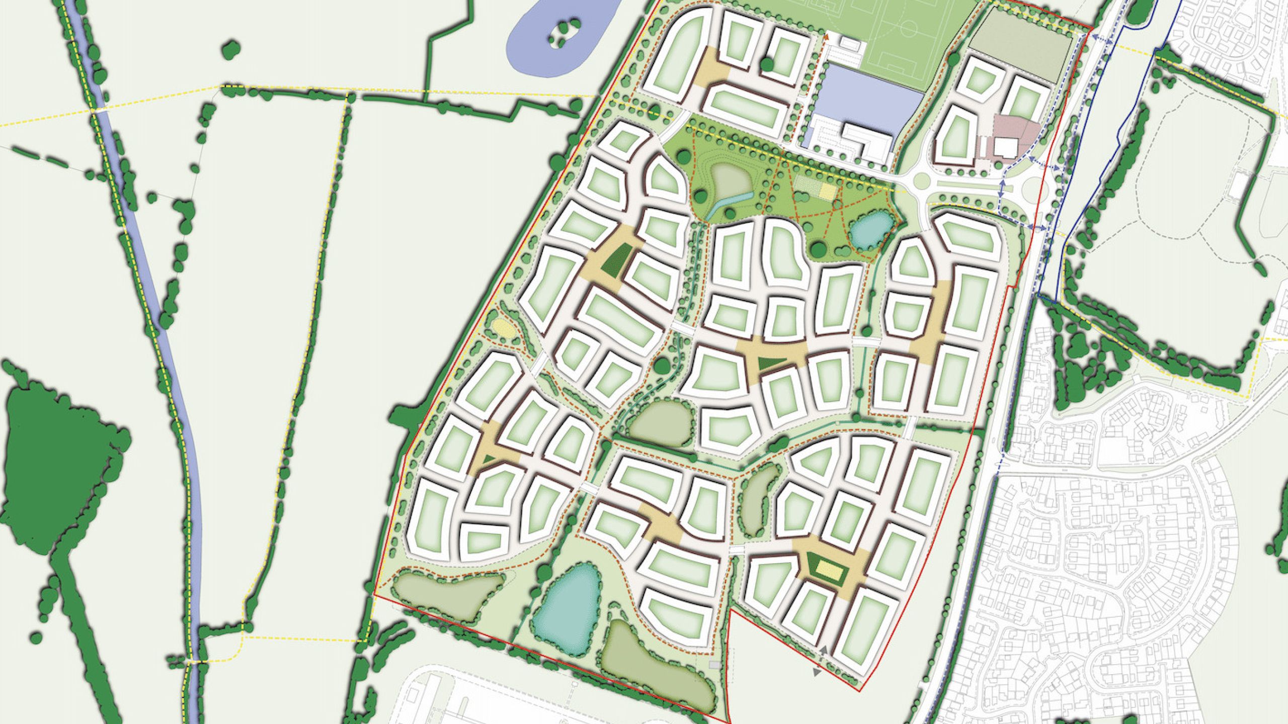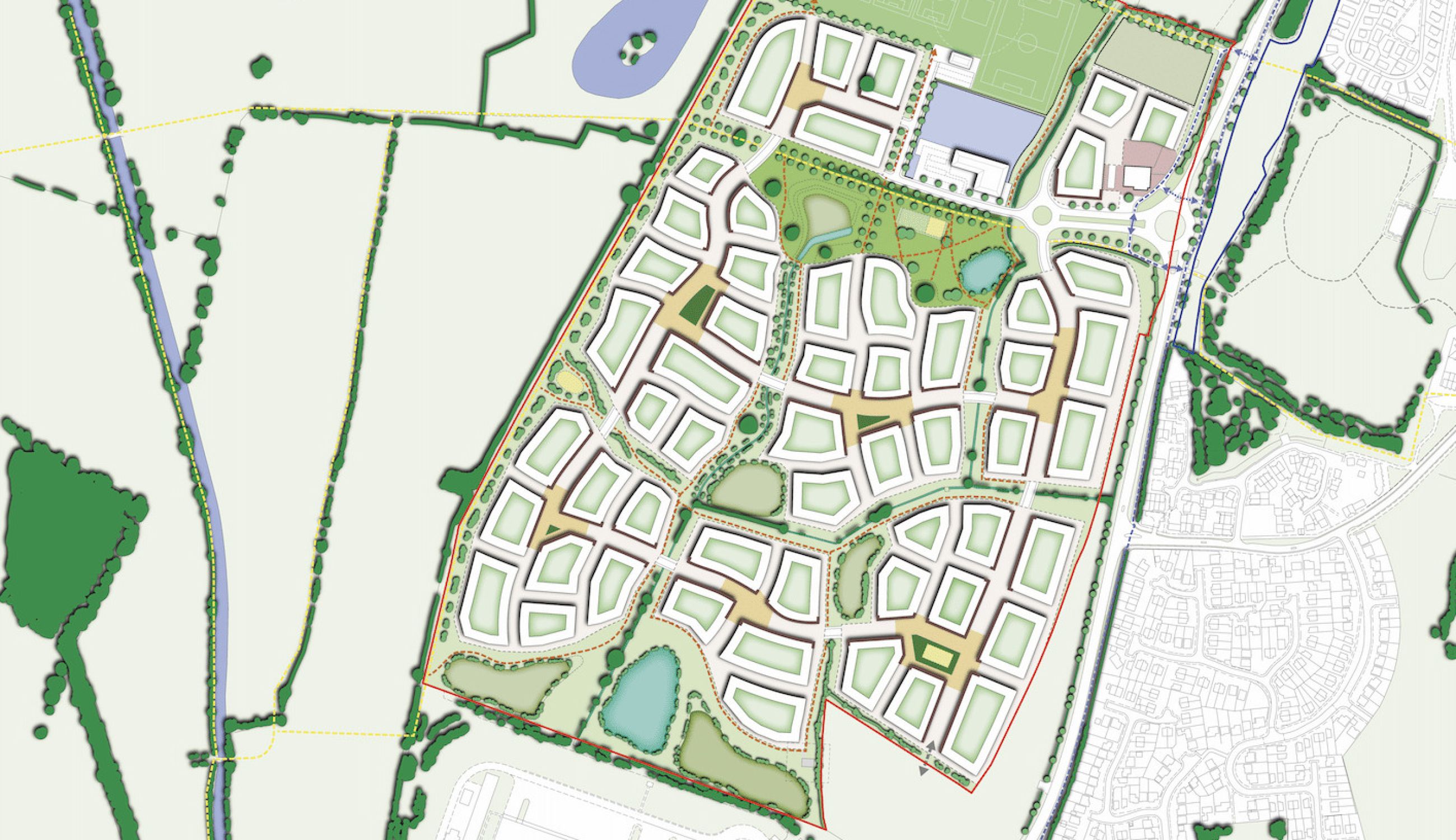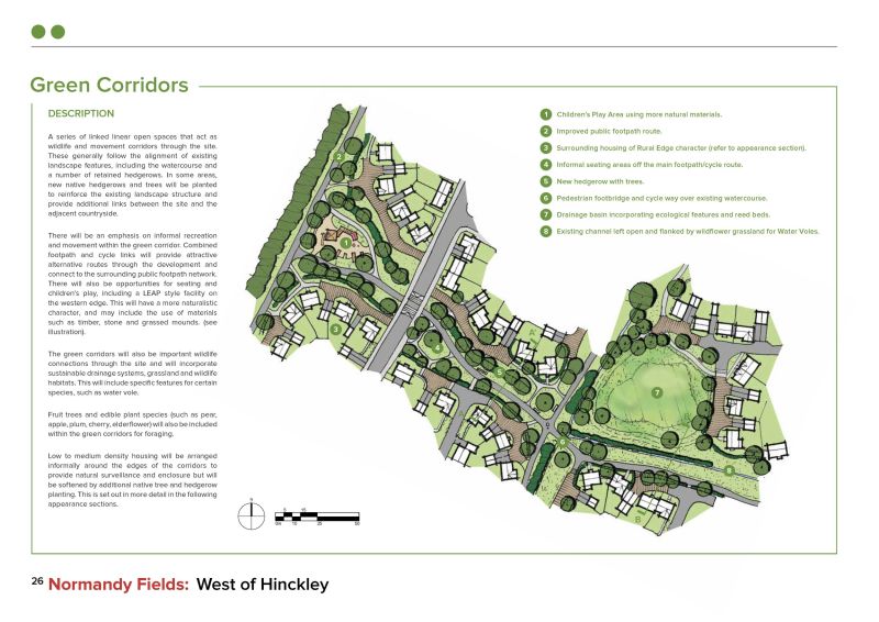A permeable network of corridors offers active movement links into Hinckley and the surrounding countryside, that are punctuated with focal spaces for socialising, sport and play. This reinforces the opportunities for ensuring the health and well-being of the residents.