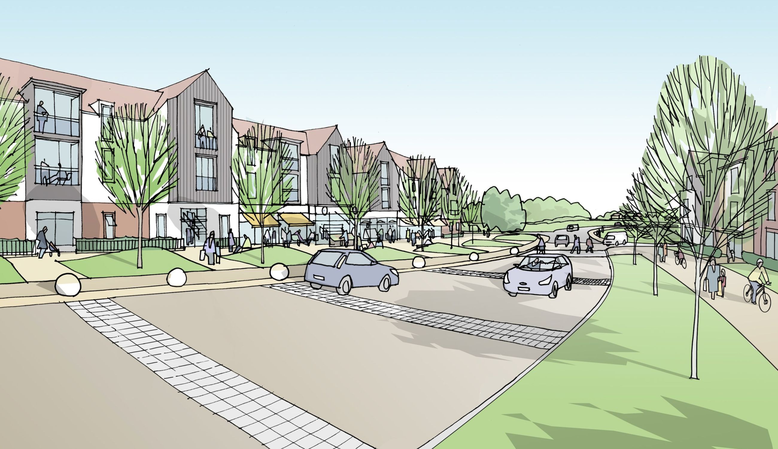 In due course an outline planning application for 1050 homes was approved, and this included both a built and landscape design code. Our involvement continued to include the detailed design of the first phase – allowing us to test the robustness of the agreed design code and establish a high quality first phase of development to set the tone for what comes thereafter.