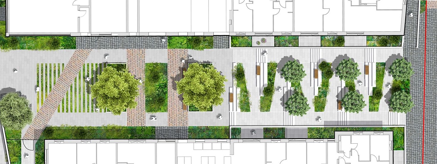 Define were appointed by Dandara to provide Landscape Architecture services to design the key public and private spaces within the redevelopment of the former Chilterns Shopping Centre in High Wycombe. Alongside this role, we were also responsible for the design of Frogmoor, an important historic public space that is adjacent to the site and in much need of regeneration.