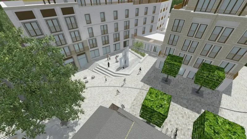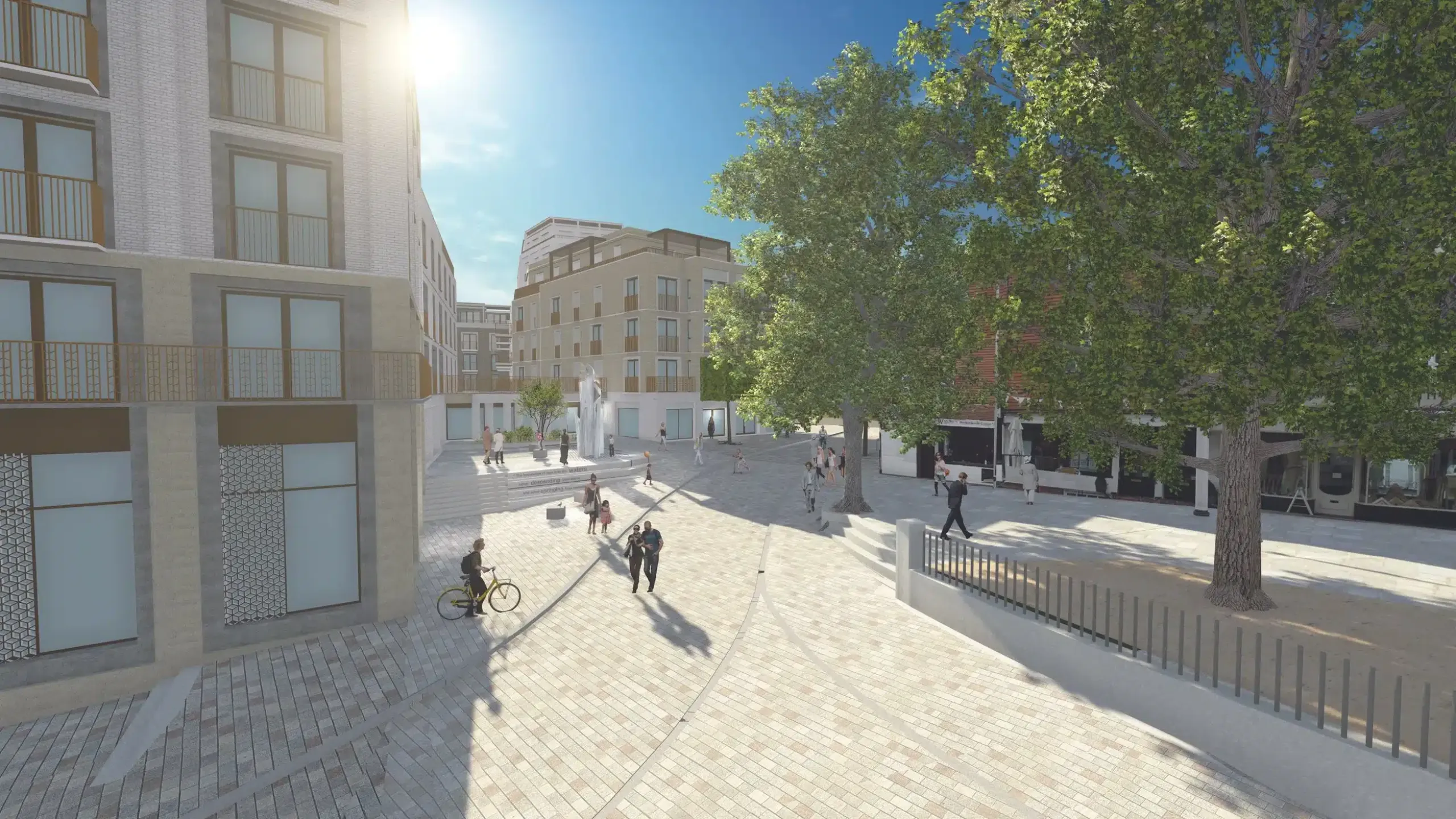 The new proposals redeveloped the building into a mix of apartments with a vibrant ground floor including restaurants and shops, all looking out onto a new public square.